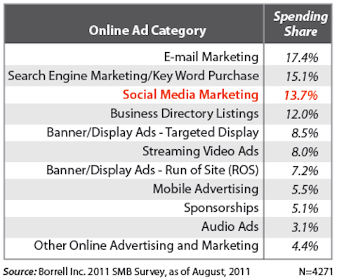 Tento průzkum se věnoval pouze malým a středním podnikům a vyplynulo z něj, že právě tyto americké právnické osoby během roku 2012 zdvojnásobí své investice do marketingu na sociálních sítích. To znamená, že by se celková částka v USA mohla přehoupnout přes dvě miliardy dolarů.