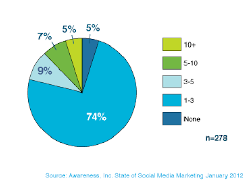 Co se týče konkrétně menších společností, tak v současnosti už pouze 10% tvrdí, že sociální marketing nevyužívají a ani to neplánují v roce 2012. Je zajímavé to porovnávat s předchozími lety – minulý rok to bylo 24 a rok před tím 39 procent.